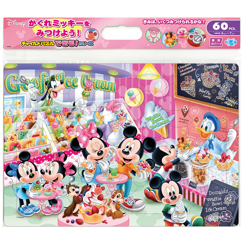 ピースやパズルの台紙を使って、パズル以外の遊びもできる!パズルです。絵のなかにかくされた「かくれミッキー」をさがして遊ぶこともできます!