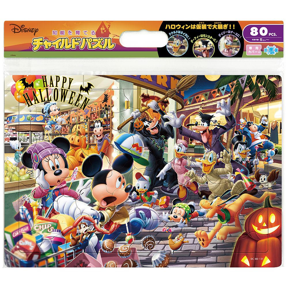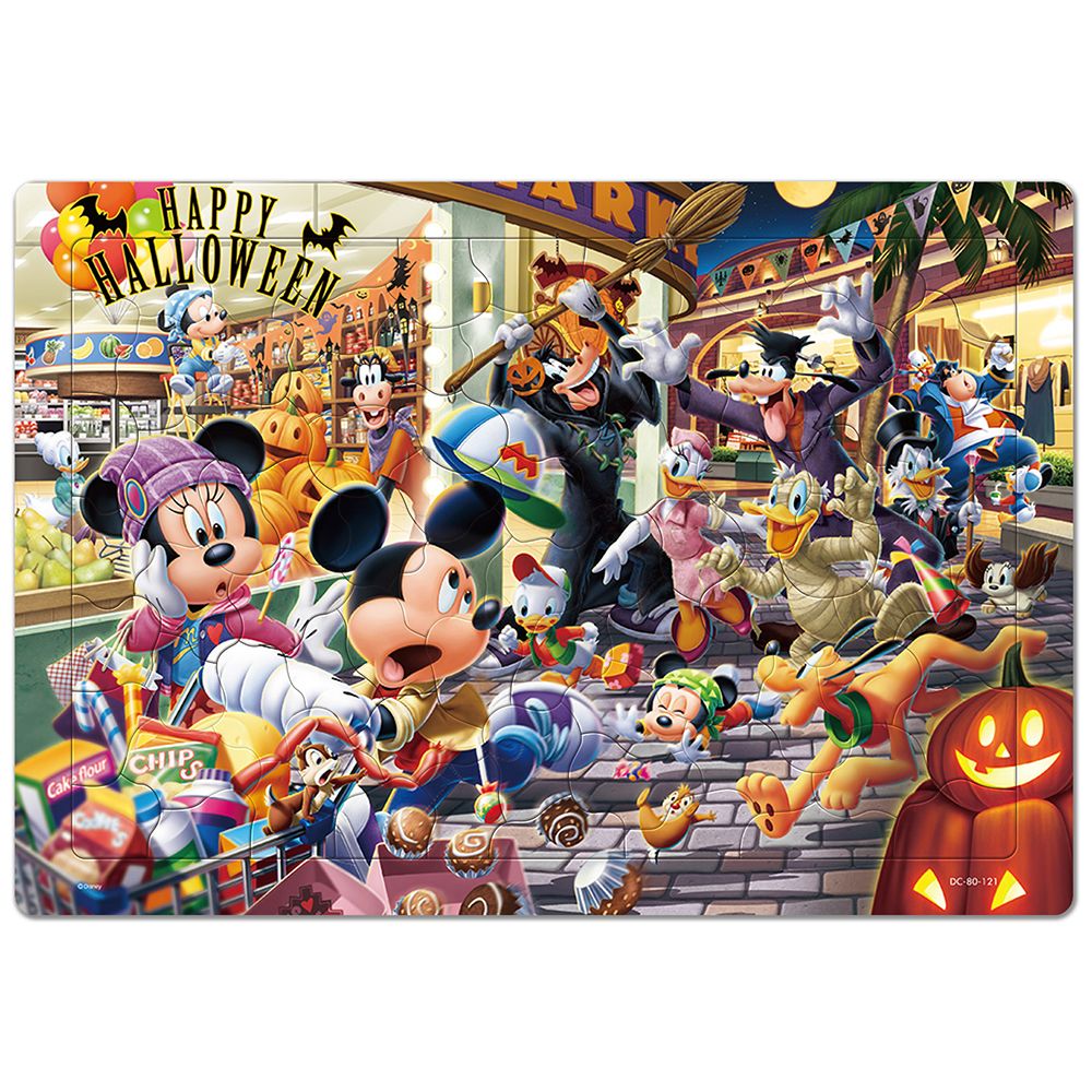 ハロウィンの仮装をしたディズニーキャラクターの楽しい絵柄のパズルです!