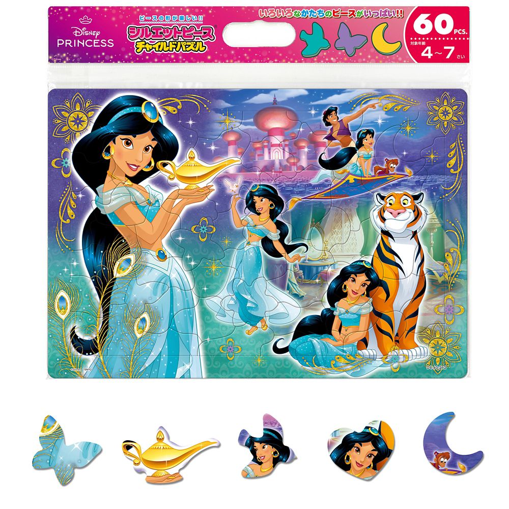 ピースの中に、ランプやチョウなど、ジャスミンに関係する形をしたシルエットピースが入っている楽しいシリーズです。