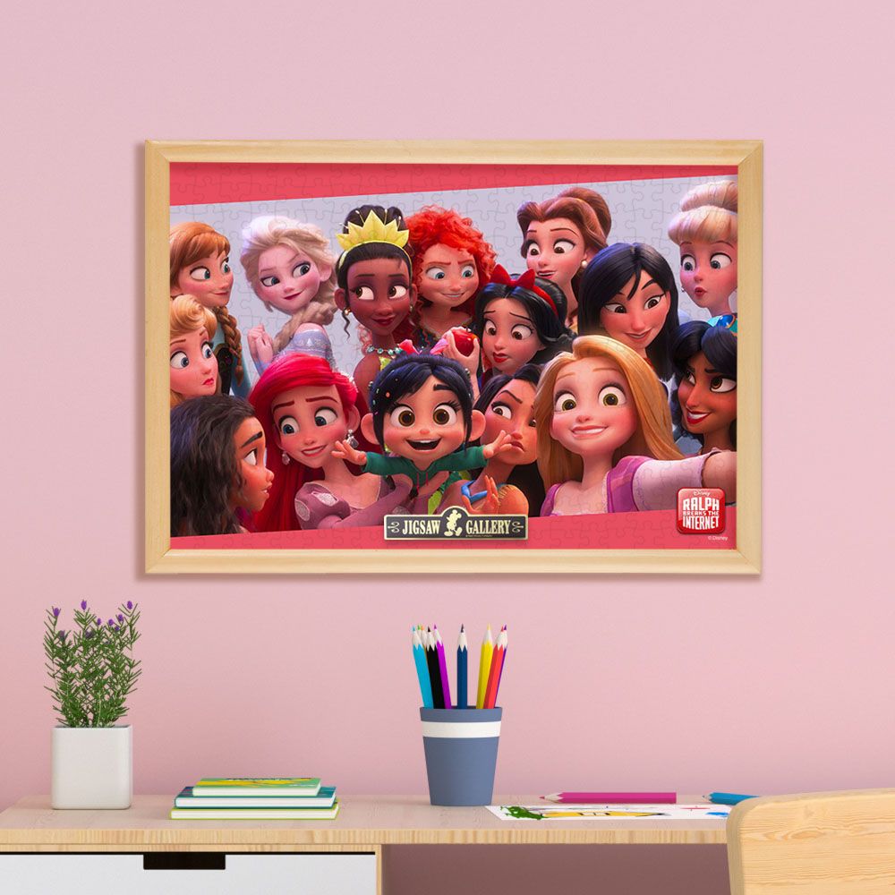 インターネットの裏側の世界を描く、映画「シュガー・ラッシュ:オンライン」。本編にはなかった、貴重でとてもオシャレなビジュアルのジグソーパズルです。レアな表情や服装のディズニー プリンセスたちは、これまでとは全くちがうイメージでしたが、新たな魅力を教えてくれました!パズルを組んだあと、別売の専用パネルに入れて飾れば、かわいいお部屋のアクセント!