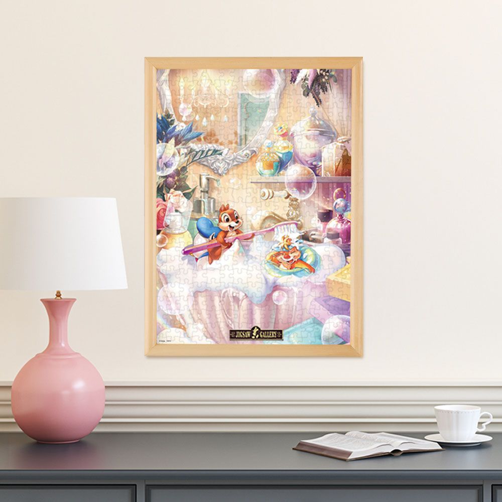 やることなすことがみんなイタズラになってしまうふたり。今日はどこかの洗面所に侵入中。相棒のアタマを無理矢理洗っているチップ。でもそれって歯ブラシじゃないの?(笑)可愛くてやんちゃなチップとデールの日常を300ピースでお楽しみください。