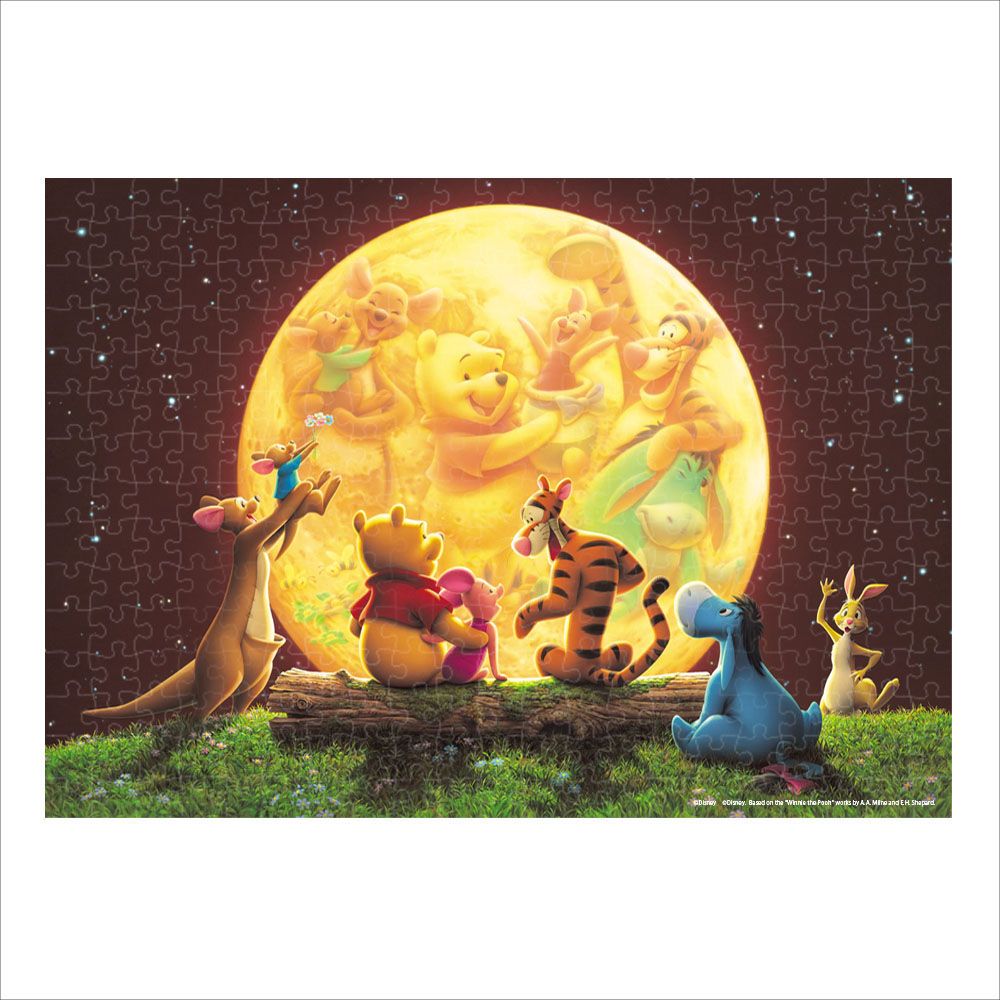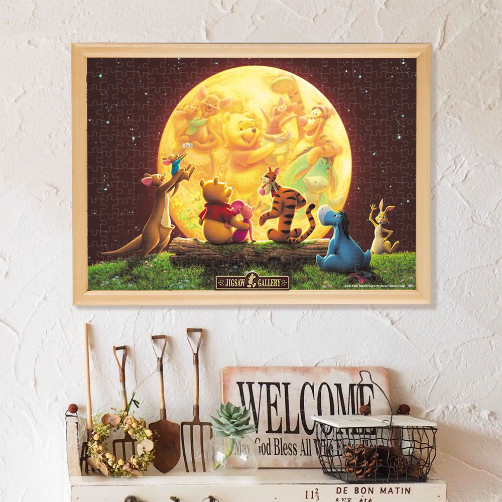 100エーカーの森の丘に大きな満月があらわれました。プーさんと仲間たちは、それぞれ思いおもいの物語を話はじめました。プーさんは、ピグレットとティガー、イーヨーに楽しいパーティーをする話。ルーは大好きなお母さんのカンガに花束をプレゼントする話。おやおや、遅れて来たラビットは、どんな話をするのでしょうか?このジグソーパズルは光を蓄えて、暗いところで発光する加工を施しているため、明るいときと暗いときで、2つの表情が楽しめます!パズル完成後は別売の専用パネルに入れて飾れば、お部屋を彩るステキなインテリアに!