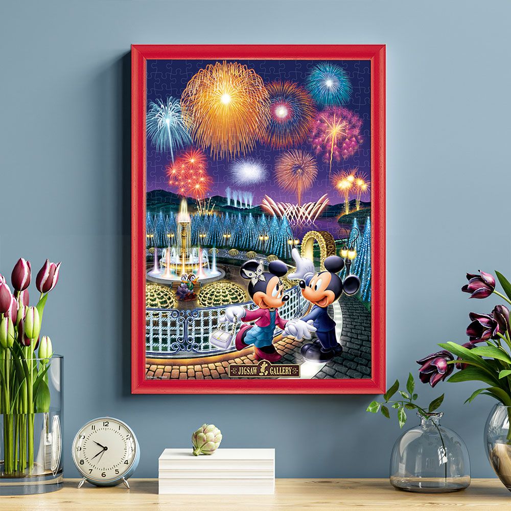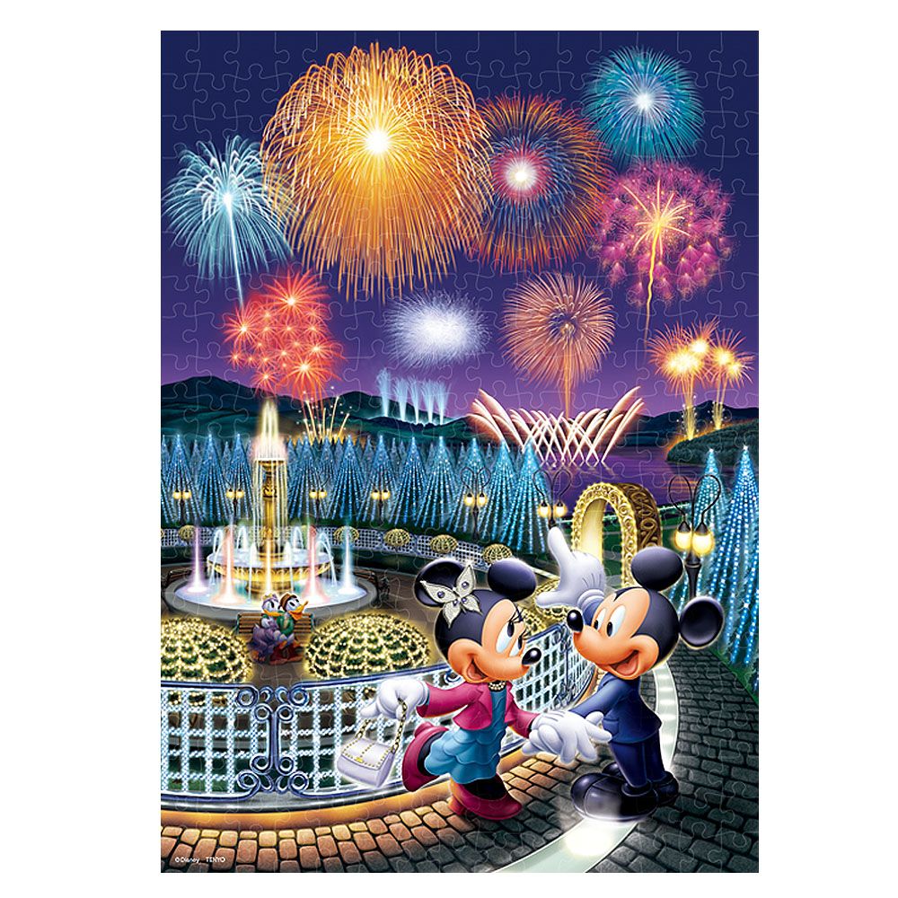 イルミネーションがきらめく夜の公園でデートを楽しむミッキー&ミニー。突然、花火が夜空を鮮やかに彩りはじめました!これってもしかして、ミッキーからミニーへのサプライズプレゼント?!光を蓄えて、暗いところで発光する光るジグソーパズルだから、明かりを消したお部屋でも絵柄が楽しめます!