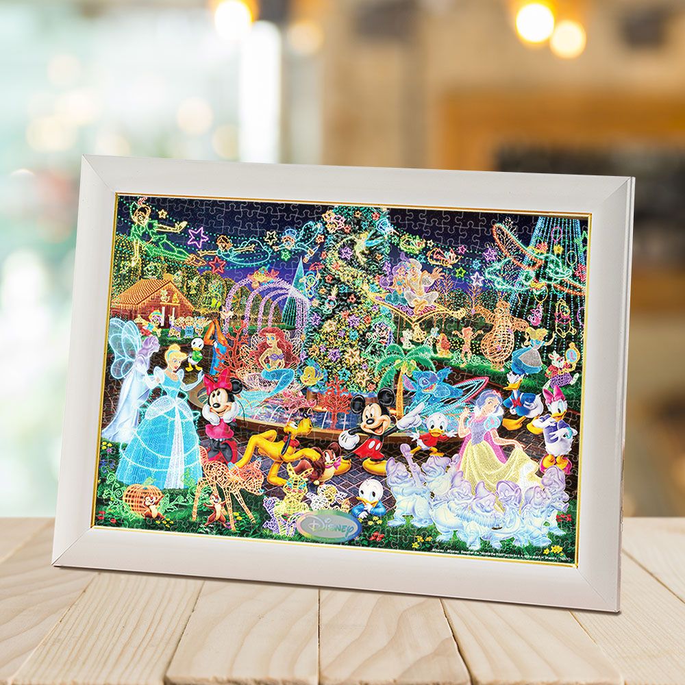 人気のディズニーキャラクター が、輝くイルミネーションとなって大集合!68のキャラクターが登場。映画にして18本に及ぶ光のアートをお楽しみください。ピースが透明!まるでステンドグラスのように、光を透して魅せる美しさと、ピタッとはまるフィット感が魅力の〈ステンドアート ジグソーパズル〉です!通常よりひと回り小さいぎゅっとサイズシリーズなので、コンパクトなスペースで本格的なジグソーパズルが楽しめます。パズル完成後は、別売の専用パネルに入れて飾れば、お部屋を彩るステキなインテリアに!