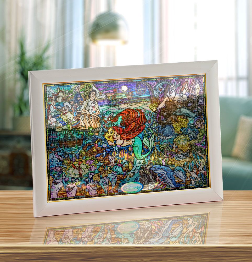 「リトル・マーメイド」の物語が1枚にぎゅっと詰まった豪華な絵柄です。ストーリーに登場するセバスチャンや、アースラなど、魅力的なキャラクターたちがぎっしり描かれています!「ピースが透明!ステンドアート・ジグソーパズル」で、光を通してより美しく、より輝いて魅せます。パズル完成後、別売の専用パネルに入れて飾れば、お部屋を彩るステキなインテリアに!ぎゅっとサイズシリーズは、通常よりひと回り小さいピースで、コンパクトなスペースでもたっぷりと本格的なジグソーパズルが楽しめます。パズル完成後、別売の「ステンド/ピュアホワイト兼用パネル ぎゅっと500ピース用」に入れて飾れば、お部屋を彩るステキなインテリアに!ぎゅっとサイズシリーズは、通常よりひと回り小さいピースで、コンパクトなスペースでもたっぷりと本格的なジグソーパズルが楽しめます。