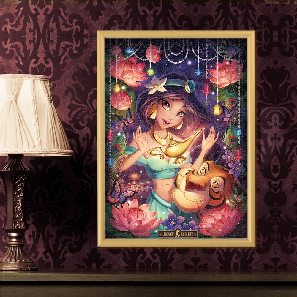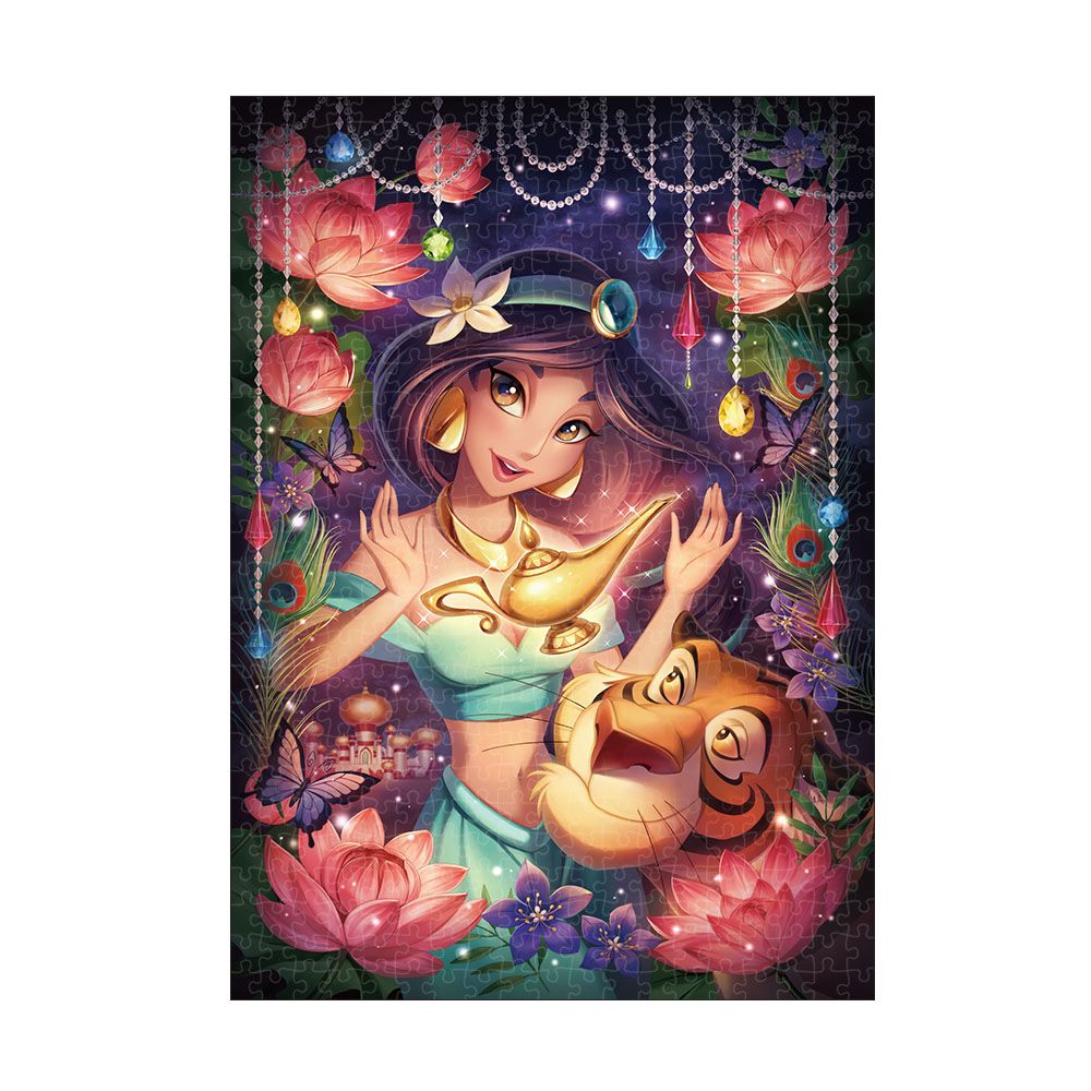 印象的なモチーフが放つ光りでキャラクターを美しく照らし出す、『ドラマティック ライト』シリーズ!魔法のランプと美しいジャスミンがとても幻想的な絵柄です。光を蓄えて暗いところで発光する光るジグソーパズルをお楽しみください。