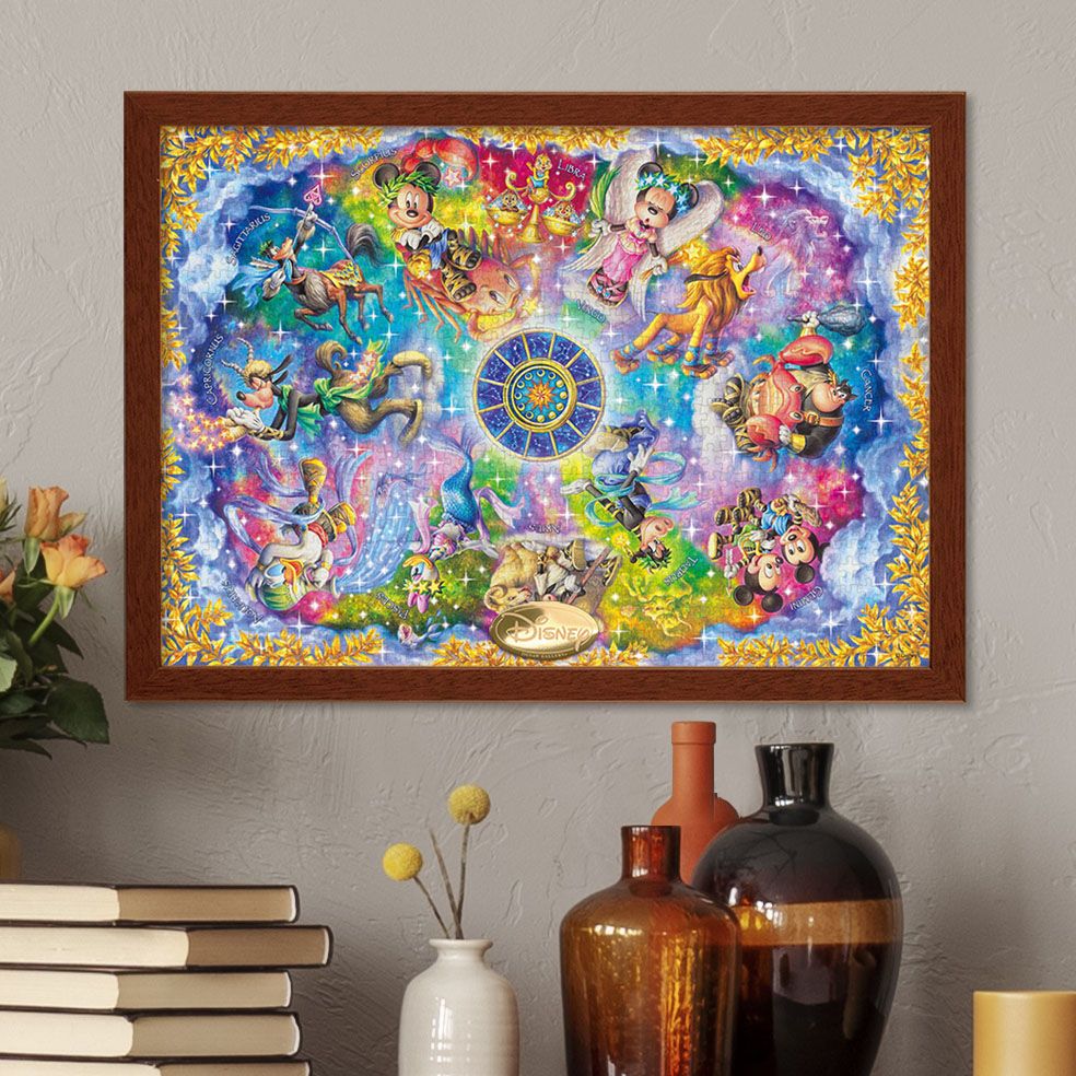 ミッキーとなかまたちを星空の神秘として幻想的に描きました。タテ、ヨコお好きな向きで飾ることのできる「マルチアングル・アート」なので、ご自分の星座に合わせて飾って見るのもオススメです!完成サイズがA3だから、小さな机の上でも遊べて、1000ピースなので組み応えも抜群!本格的なジグソーパズルの達成感が味わえます。パズル完成後は、別売の専用パネルに入れて飾れば、お部屋を彩るステキなインテリアに!
