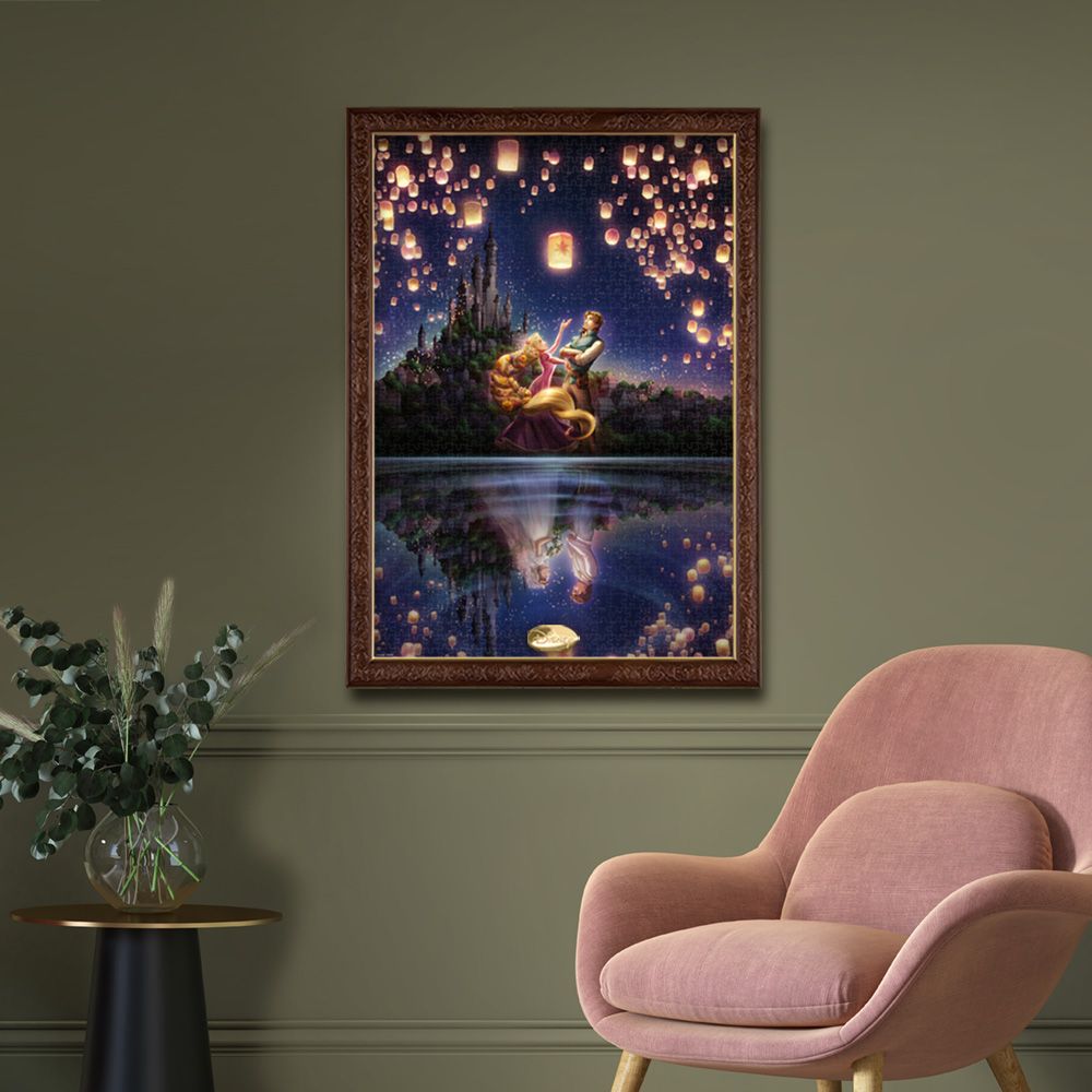 出会いは最悪の二人でしたが、共に行動し、様々な困難を乗り越えるうちに心の距離が近づいていきます。ランタンの幻想的な光に包まれて、二人の気持ちの中には変化が…。この出会いが運命であったことを湖が映し出しています。この作品のロマンチックなムードをさらに盛り上げる、光を蓄えて暗いところで発光する光るジグソーパズルでお楽しみください。