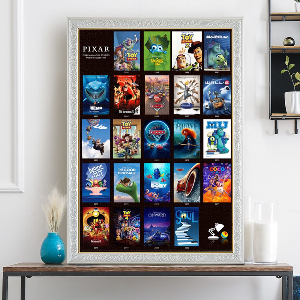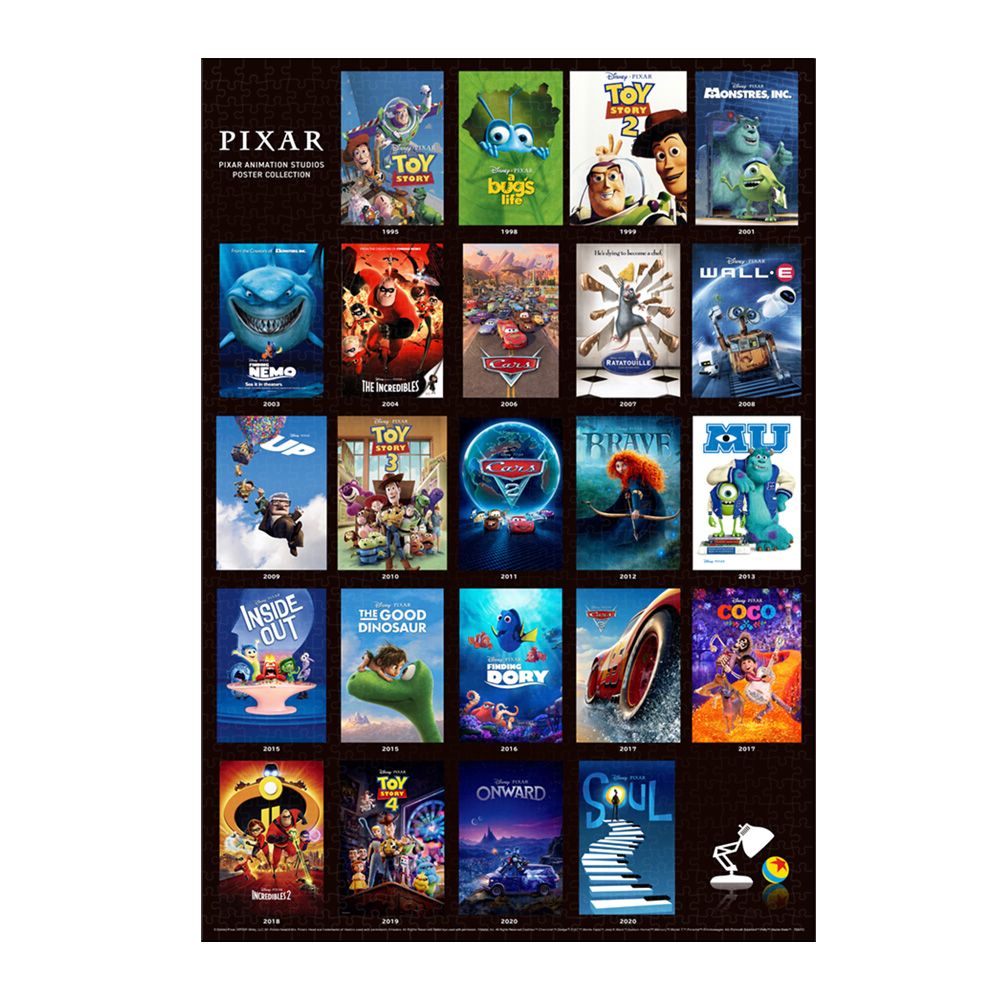 本国アメリカでは世界初のフルCGアニメーション劇場用長編映画として1995年に公開された「トイ・ストーリー」から、最新作「ソウルフル・ワールド」までピクサー長編アニメーション全23作品の劇場用ポスターを一堂に集めたジグソーパズル です。こだわりは、このポスターたちは全て本国アメリカ版のアートを使用しています。25年間に渡るピクサー作品の歴史を振り返りながらジグソーパズルを組めば、あのときの感動が蘇ります!