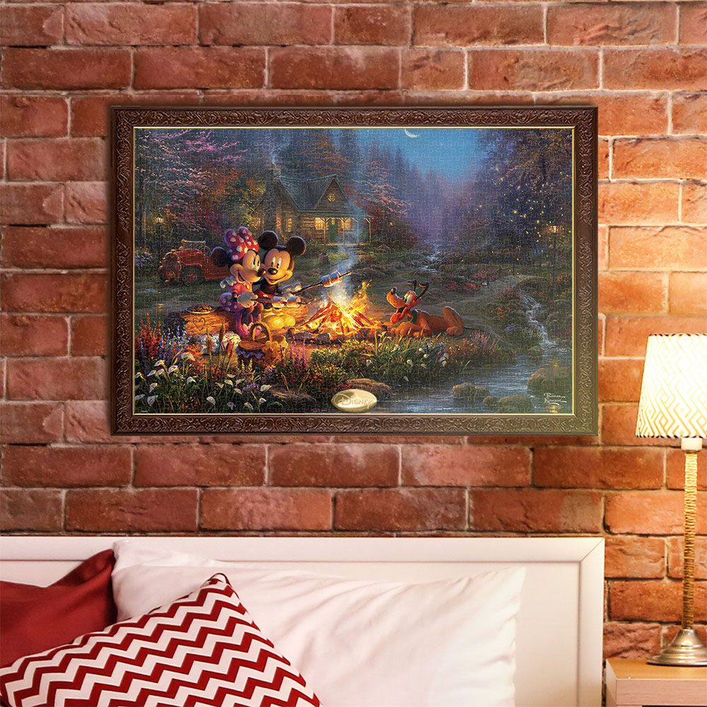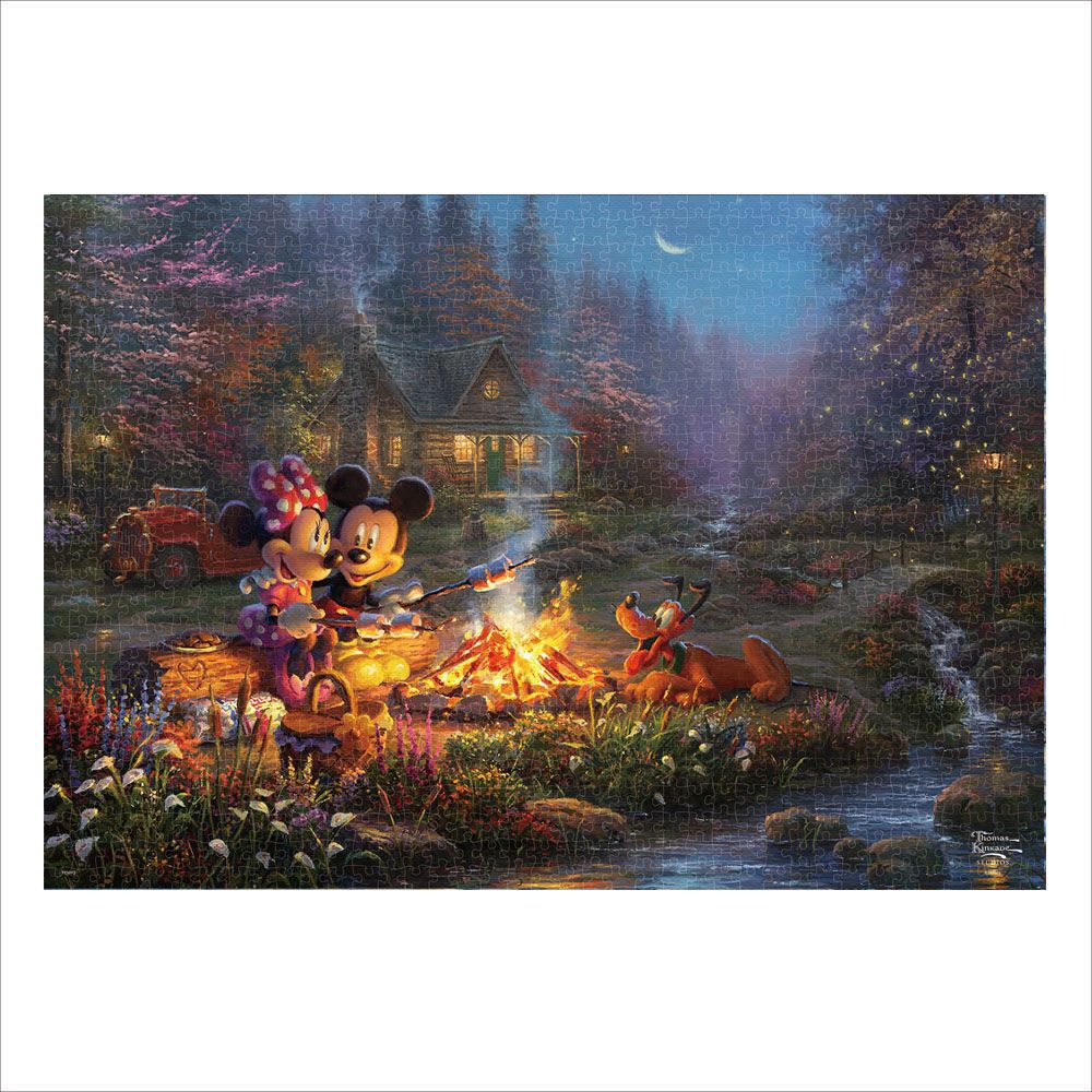 〈スペシャルアート・コレクション〉トーマス・キンケード スタジオが描く「ミッキーマウス&ミニーマウス」の世界! 米国では最も人気のあるアーティストの一人で、彼が描き出す世界はどれも平和と喜びにあふれ、温かく包み込むような光の表現が、見る人の心に感動と癒しを与えてくれます。このアートのタッチを生かすために、パズルの表面に凹凸をつけ、絵画で用いる「キャンバス」のような加工を施した〈キャンバス・スタイル〉でご用意しました。パズルの完成後は、別売の専用パネルに入れて飾ることで、お部屋をステキに彩るインテリアとしてもお楽しみいただけます!