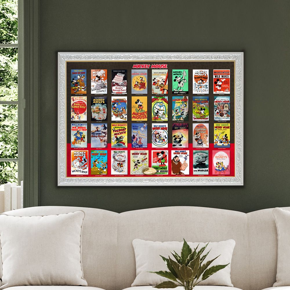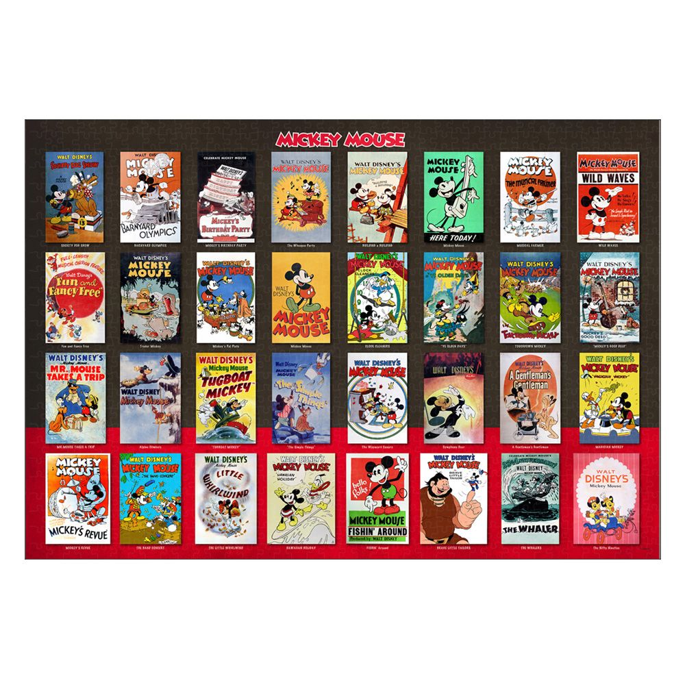 1920年代から1950年代まで、ミッキーマウスが出演した32作品のポスターが大集合。年代とともに少しずつ変わるその姿は、世界で最も有名なスーパースターの証かもしれませんね!パズルを組みながら彼の歴史と変遷をお楽しみください!!完成後は、別売の専用パネルに入れて飾ることで、お部屋を彩るステキなインテリアに!