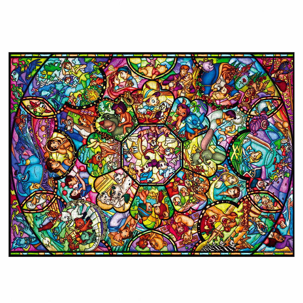 大聖堂の天井に飾られるステンドグラスのイメージで描きました。31のディズニーアニメ作品、107体のキャラで構成しています。ユニークな特徴としてタテヨコどの向きでも鑑賞することができるので、お好きな向きで飾ることもできます。