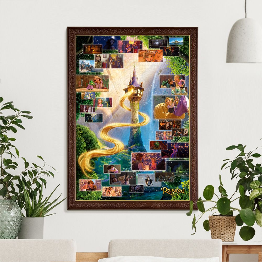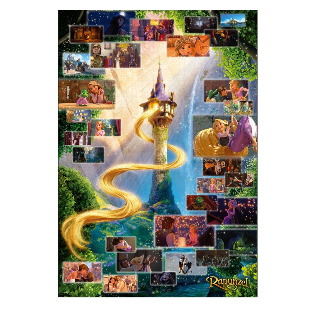 ラプンツェルの長い髪がなびく塔を中心に、画面右上から流れる光に沿って、ストーリーのはじまりからエンディングまで、30以上のシーンをレイアウトしています。パズルを組みながら、楽しさと感動いっぱいの「塔の上のラプンツェル」の物語をお楽しみください!