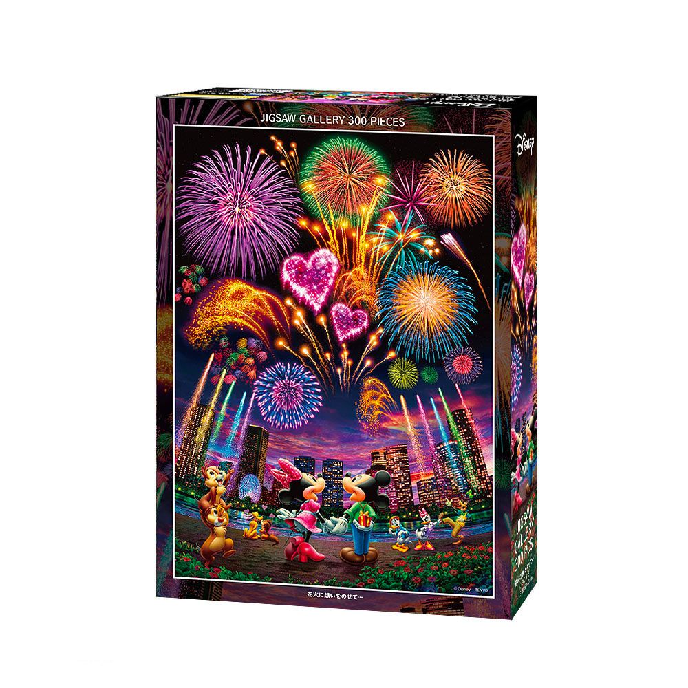 夜空の街並みを鮮やかに彩る花火がとても豪華でロマンチック!プルートとフィフィはハートの花火の下でラブラブ〜!ミッキーが隠し持っているプレゼントは、ミニーにいつ渡すのでしょう?花火に夢中で忘れないようにね!