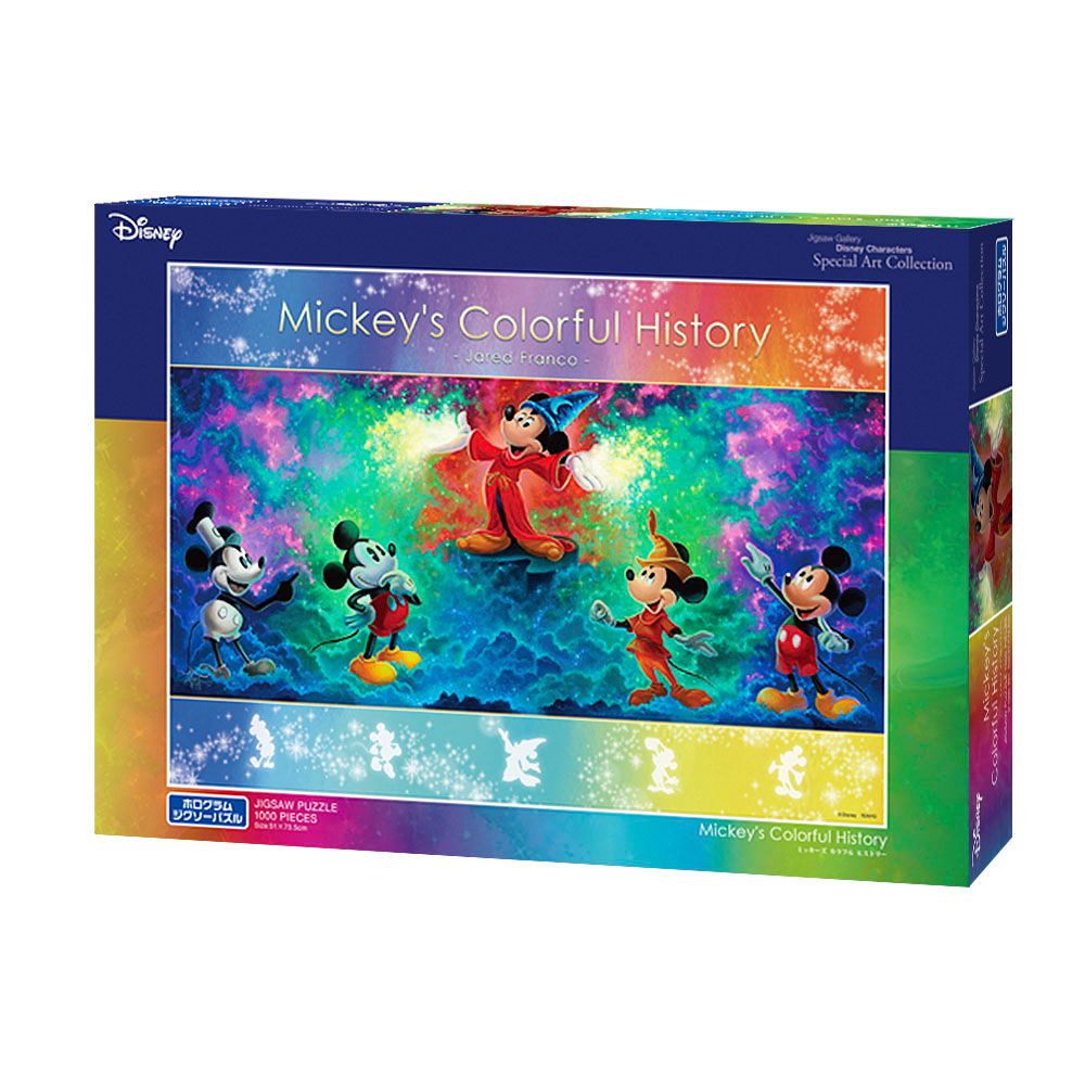 ディズニー創立100周年を記念して、スペシャルアート・コレクション シリーズから、アーティストのジャレッド・フランコが描く、特別なアートが登場!1928年のデビュー作『蒸気船ウィリー』から現在の姿まで、歴代のミッキーマス5体を左から右へとその変遷を表現しています。