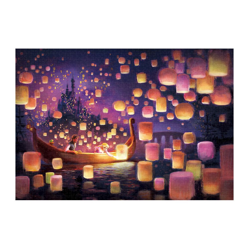 思わずランタンへ手を伸ばし、身を乗り出すラプンツェルの生き生きとした表情が、水面に照らし出されています。