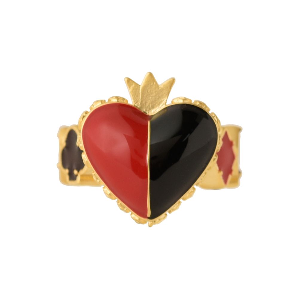 赤と黒のコントラストが象徴的な“ハートの女王”のリング。