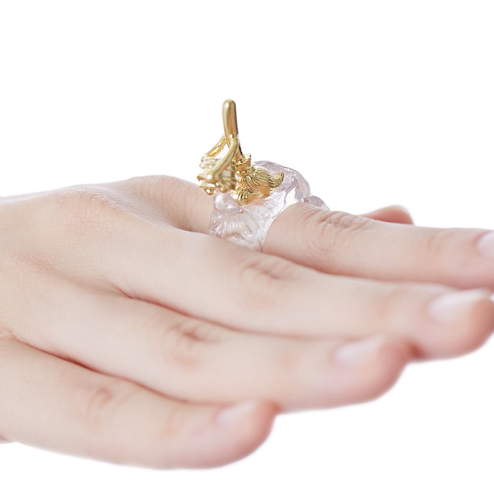 ネックレスとリングはバケツから水があふれ出すシーンを忠実に表現したストーリー性のあるデザイン。