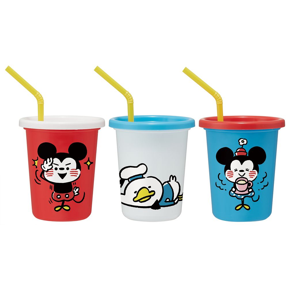可愛いキャラクターのフタ付きコップ3個セット。