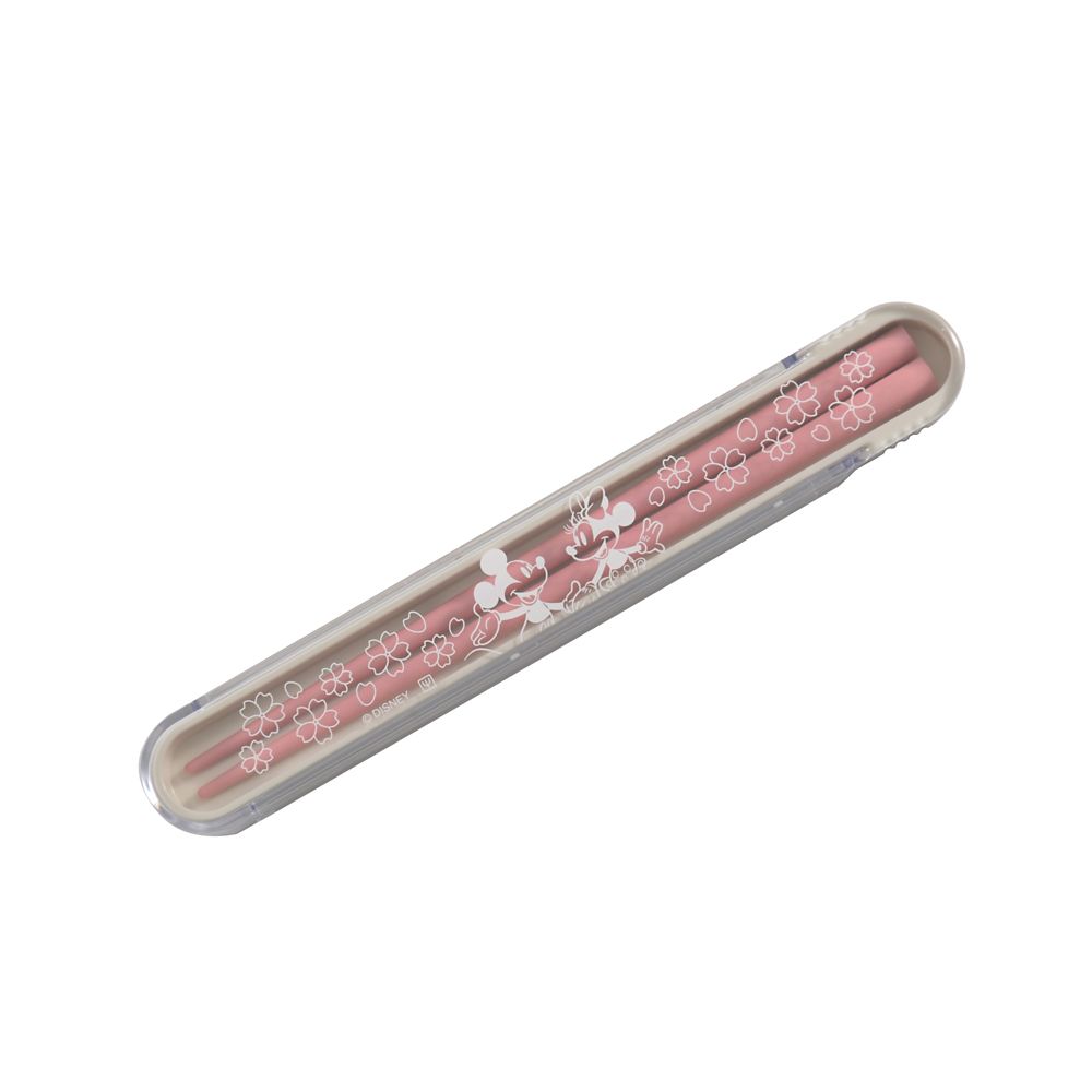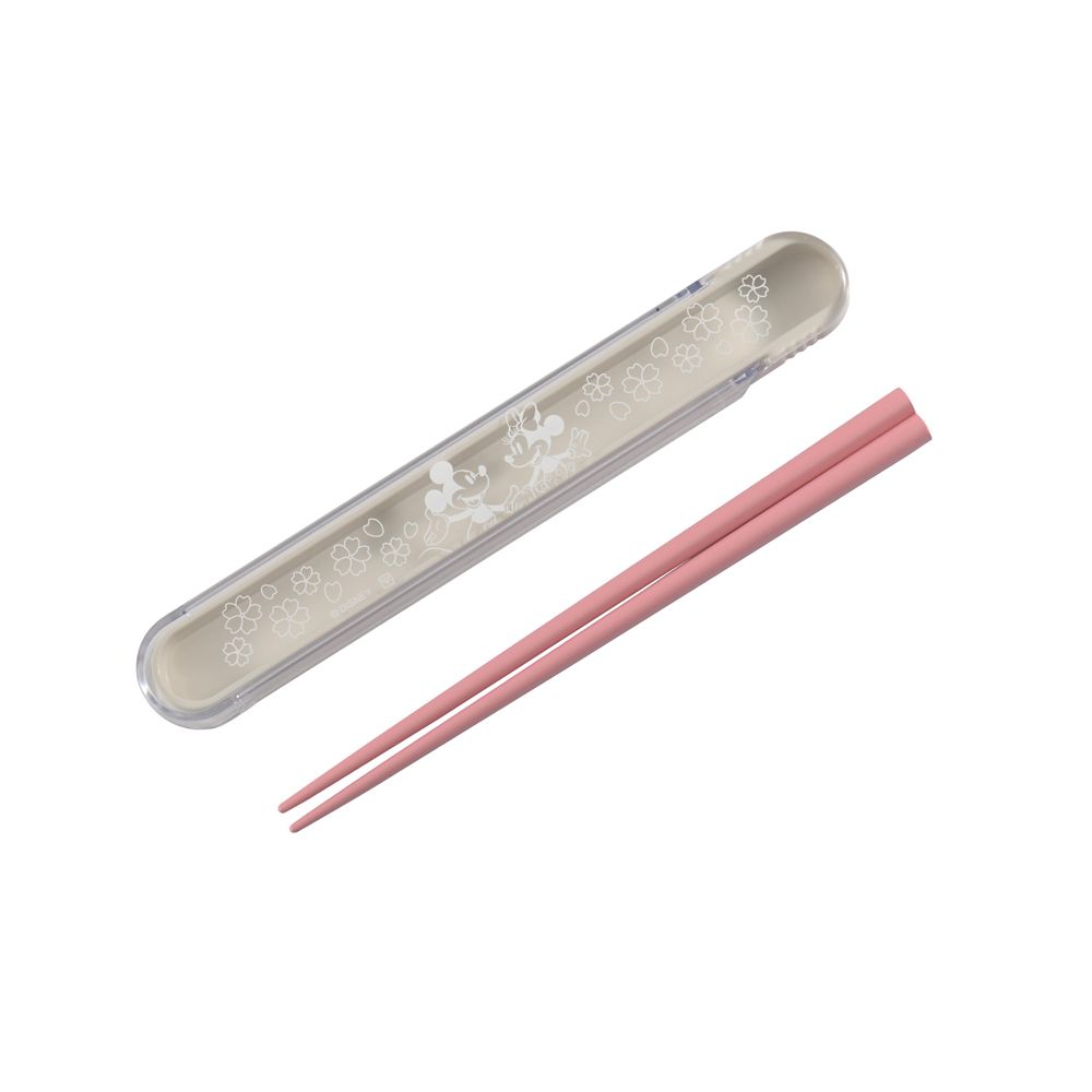 お箸と箸箱のセット。セットのピンク色のお箸を入れると、箸箱のフタにデザインされた透明なさくらがピンク色に!