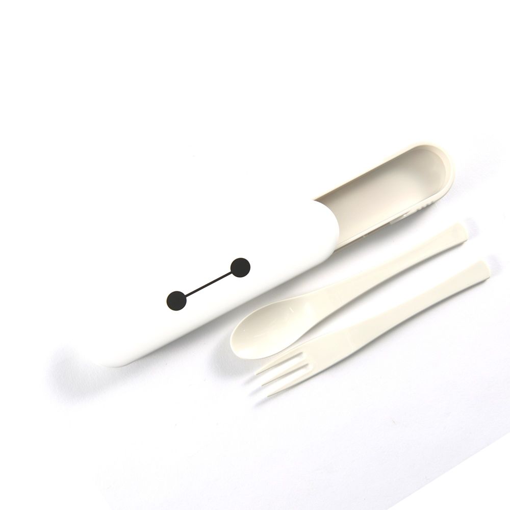 スプーンとフォークのカトラリーセット。べイマックスの顔がデザインされたケース入り