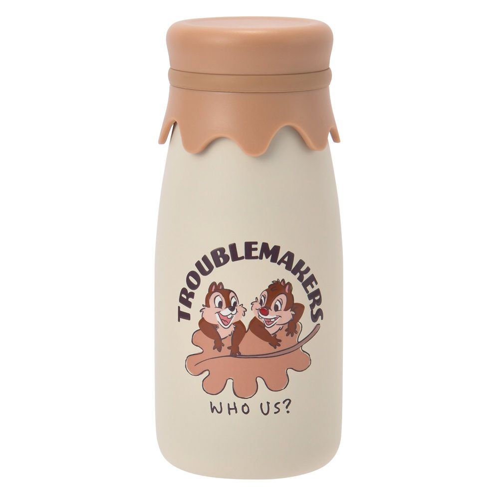 茶色のフタ、白い素地のボトルはどこか懐かしいレトロ風味。表・裏、両面にチップ&デールがデザインされています。