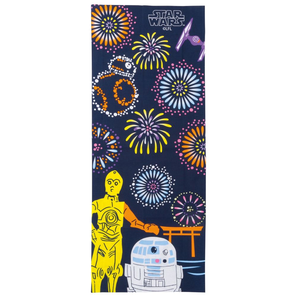 スター・ウォーズデザインのユニークな手ぬぐいです♪みんなで花火大会!花火にまぎれてBB-8が。