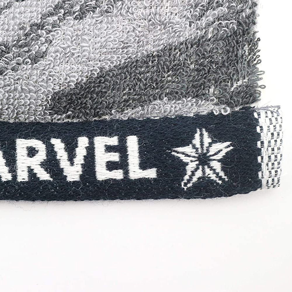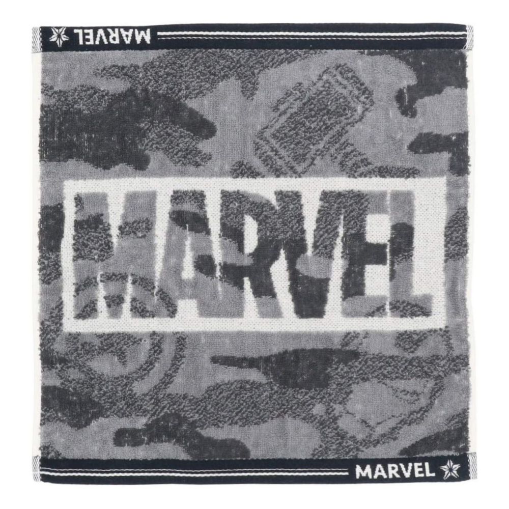 灰色迷彩柄のタオルです。キャラクターのアイコンがさりげなく入っているので日常的に使えるマーベルファンにとってもうれしいグッズです♪
