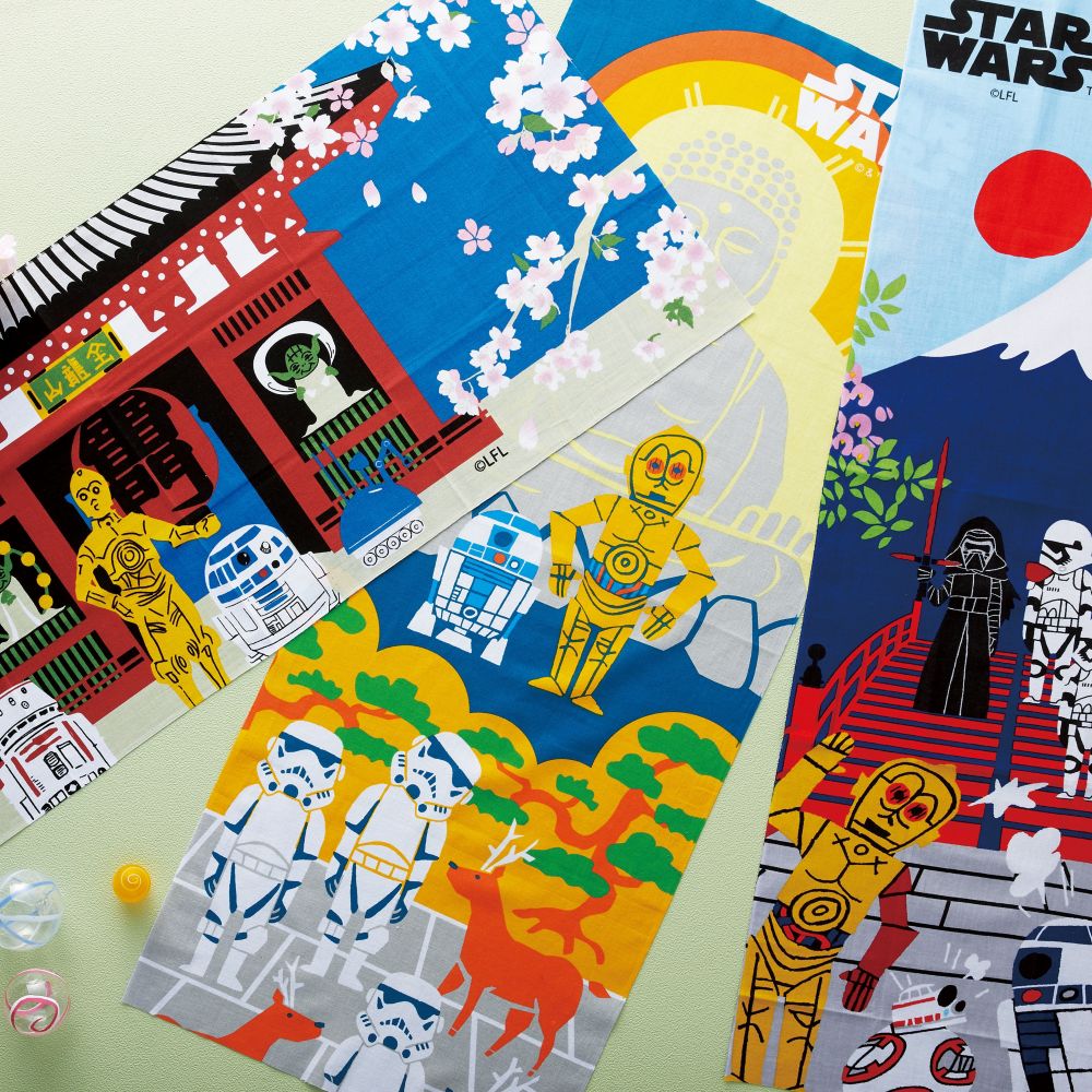 日本中を旅するスター・ウォーズのキャラクターたちがデザインされた、とっても可愛らしい日本製手ぬぐいです。