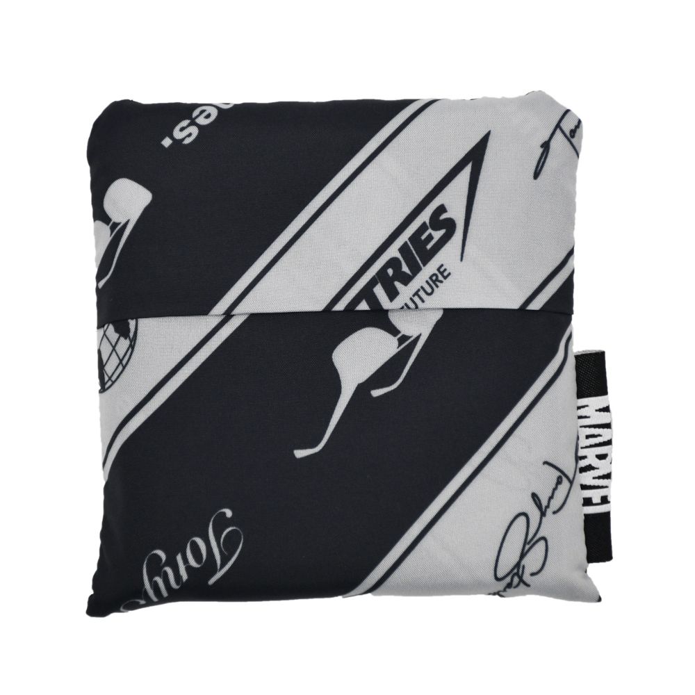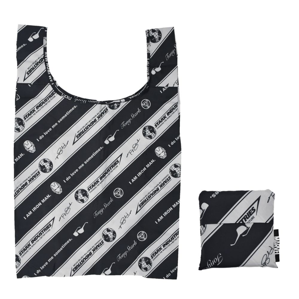 アイアンマンとスターク・インダストリーズのロゴがストライプに描かれたオシャレなエコバッグです。折りたたんで毎日持ち歩けるから、必要なときにいつでも使える♪便利なエコバッグです。
