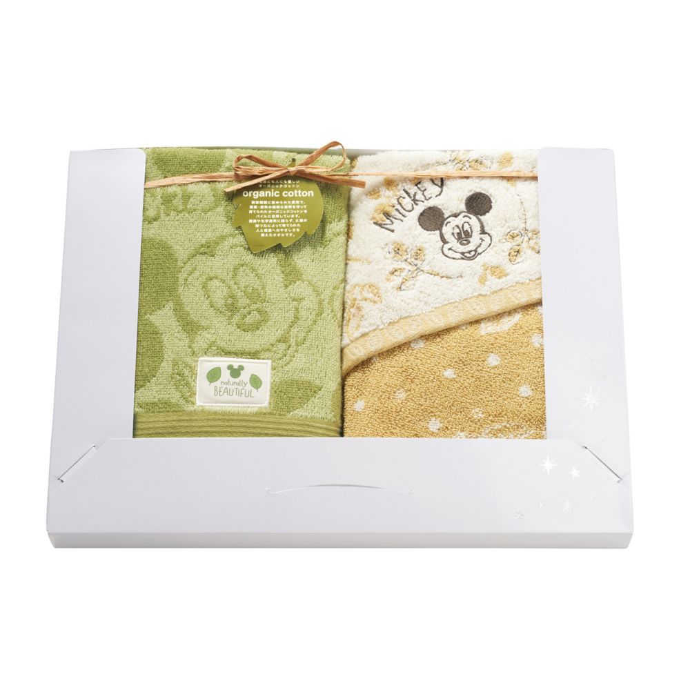 グリーンのタオルは、ワンポイントとしてナチュラルなデザインのネーム入り、ベージュのタオルは肌触り柔らかな「無撚糸」を使用しています。