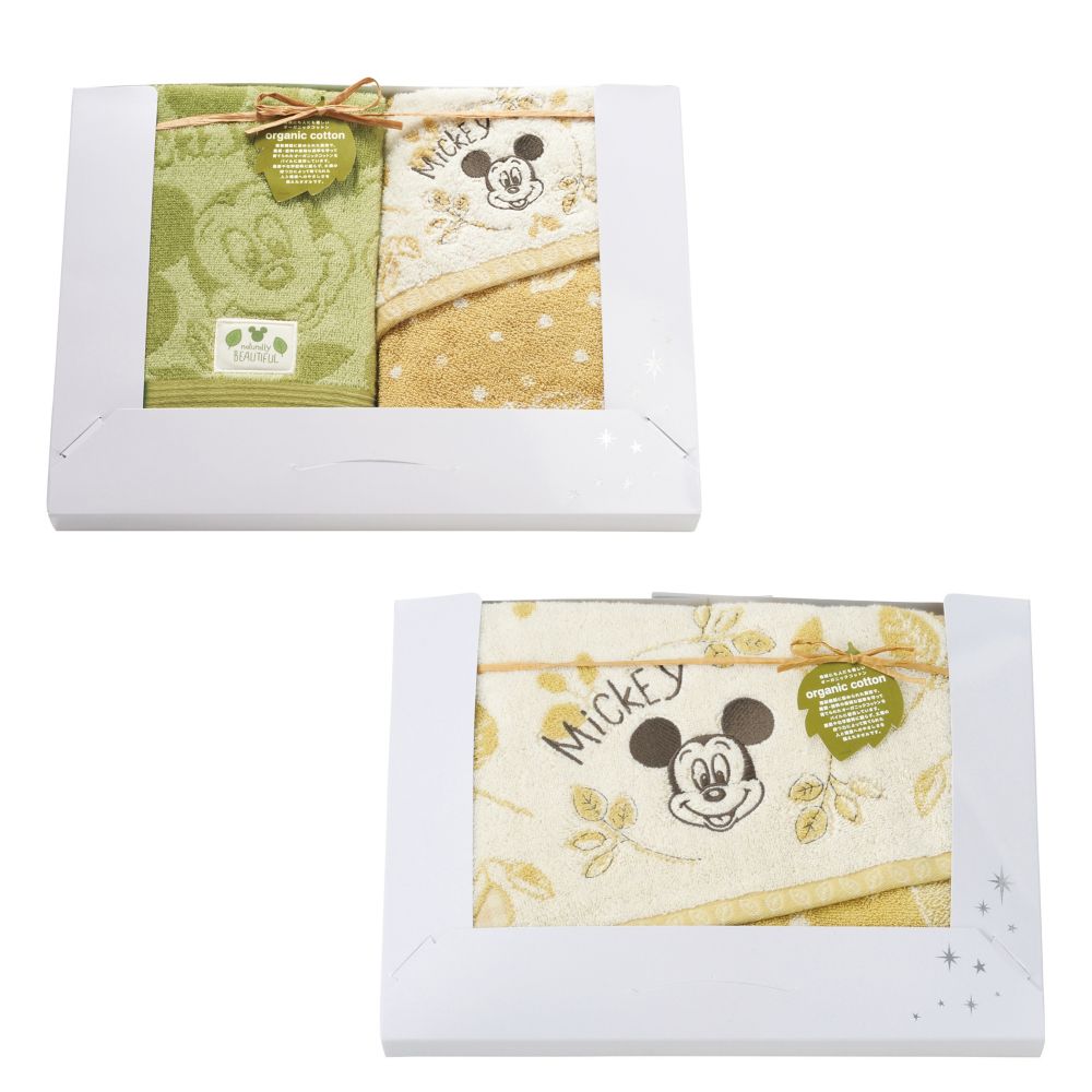 グリーンのタオルは、ワンポイントとしてナチュラルなデザインのネーム入り、ベージュのタオルは肌触り柔らかな「無撚糸」を使用しています。