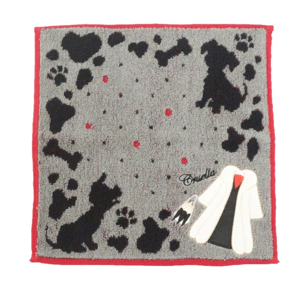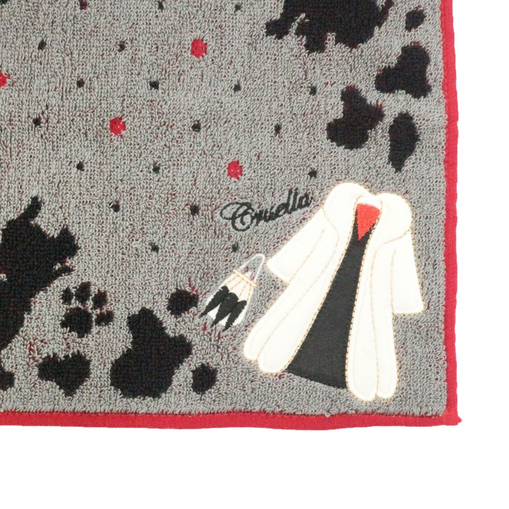 101匹わんちゃんに登場するクルエラの衣装がデザインされたタオルです。