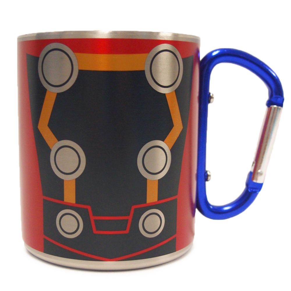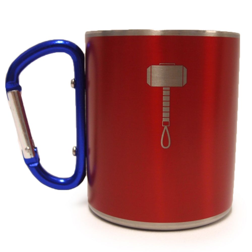 持ち手部分がカラビナになっているマグはステンレス製なので、アウトドアにも便利。