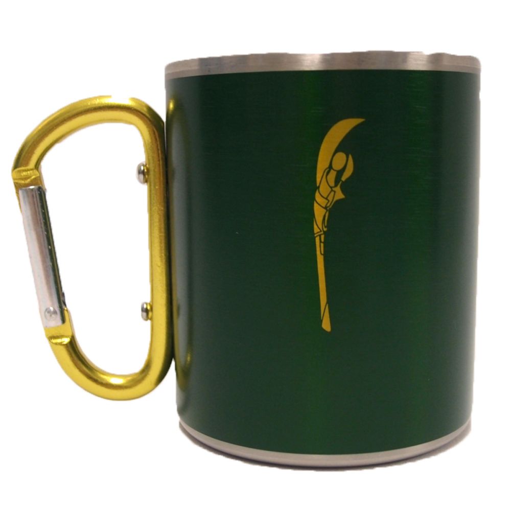 持ち手部分がカラビナになっているマグはステンレス製なので、アウトドアにも便利。