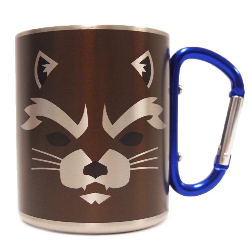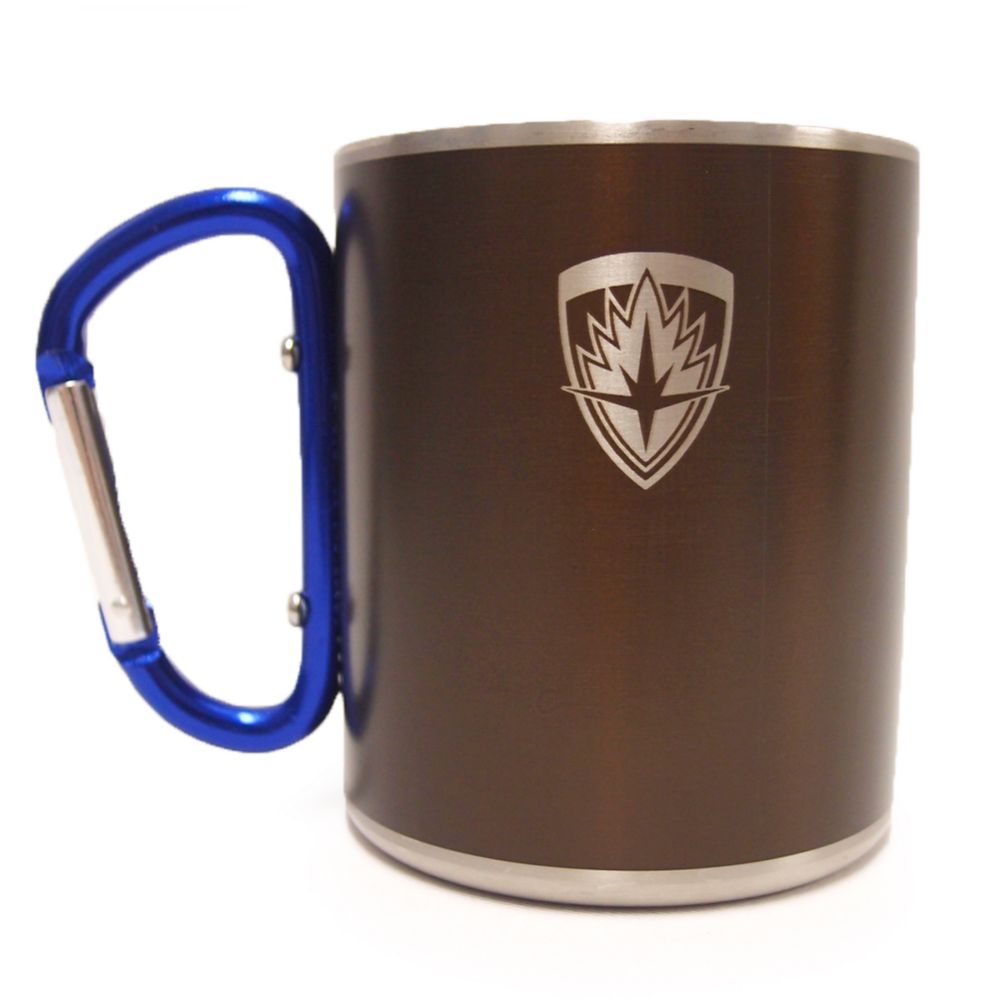持ち手部分がカラビナになっているマグはステンレス製なので、アウトドアにも便利。