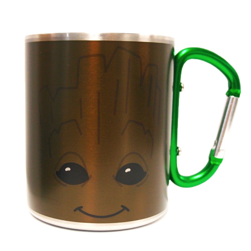 持ち手部分がカラビナになっているマグはステンレス製なので、アウトドアにも便利。