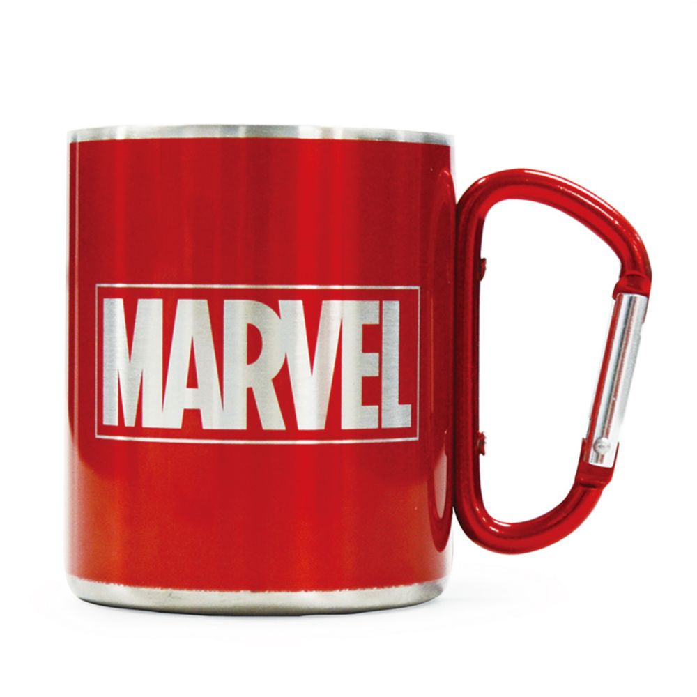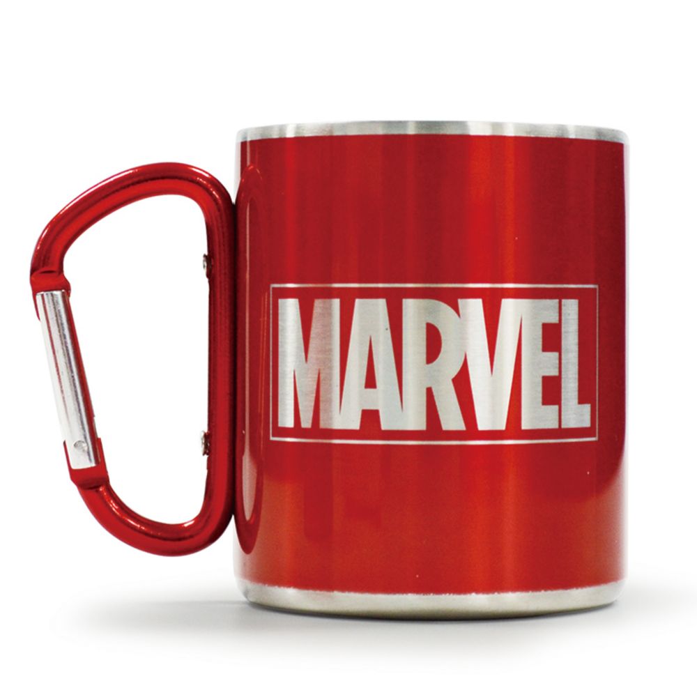 持ち手部分がカラビナになっているマグはステンレス製なので、アウトドアにも便利。