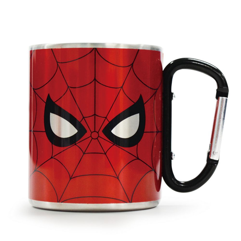 持ち手部分がカラビナになっているマグはステンレス製なので、アウトドアにも便利。