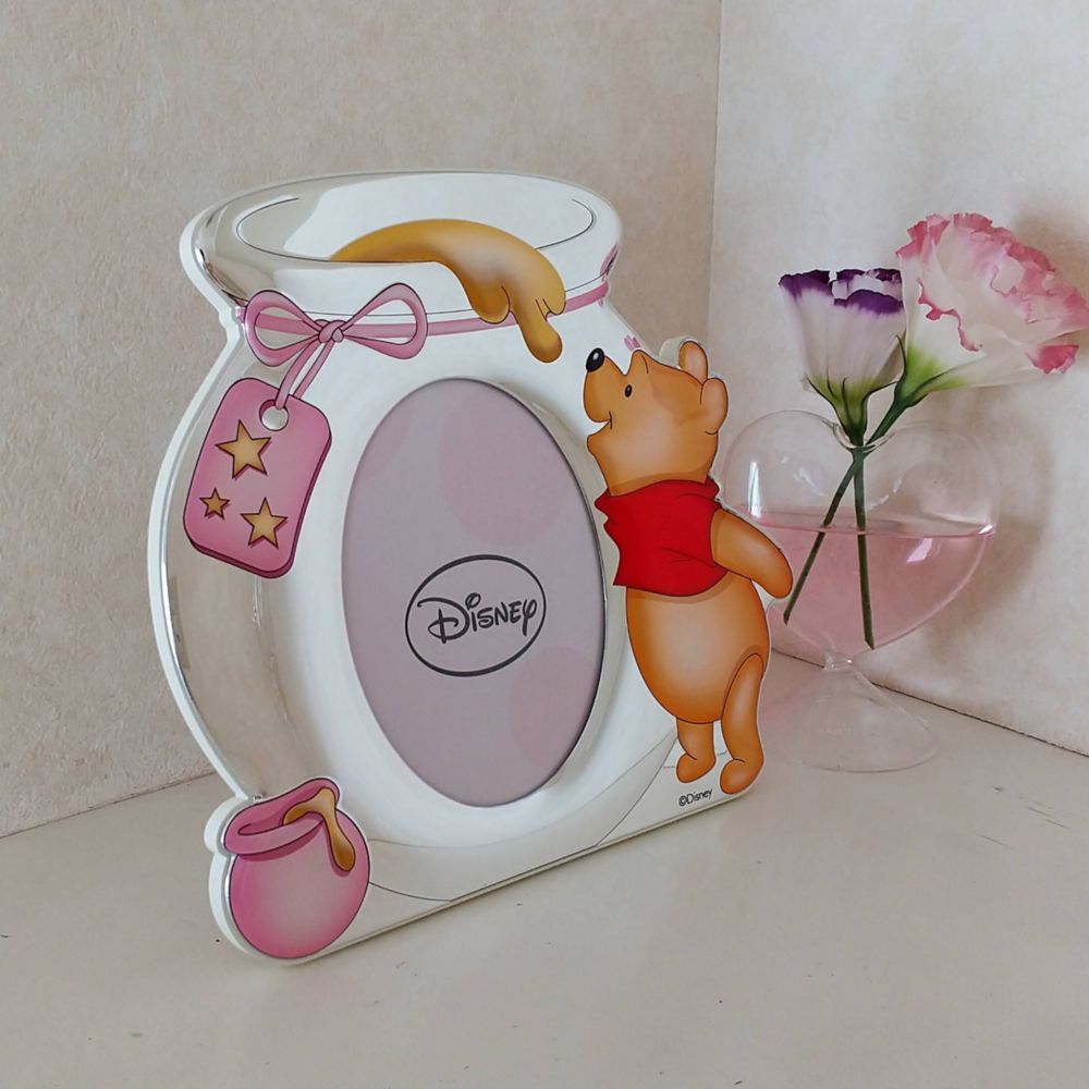 【イタリア直輸入】VALENTI フォトフレーム シルバー加工 くまのプーさん フルカラーピンク(はちみつ壺) D240 3XLRA 10x15cm  はがきサイズ