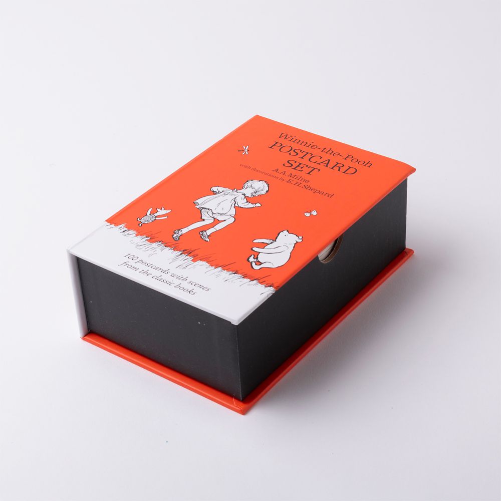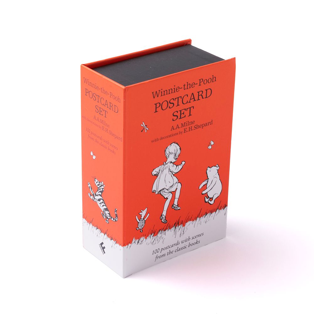 くまのプーさんの名場面を楽しめるポストカードセット。100枚のポストカードが入っています。