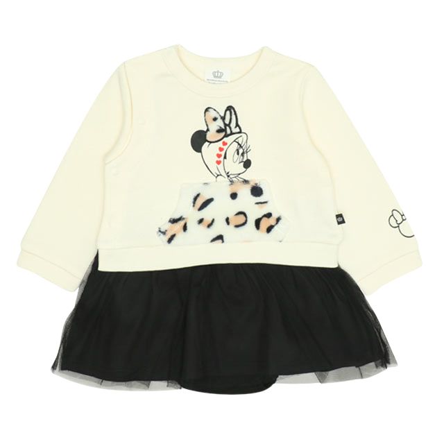 【ベビードール】ミニー ヒョウ柄ボアポケットドッキングロンパース 0006B / ベビーサイズ 赤ちゃん 出産祝い 贈り物 プレゼント リンクコーデ ペアルック 親子コーデ ベビー服 スウェット素材
