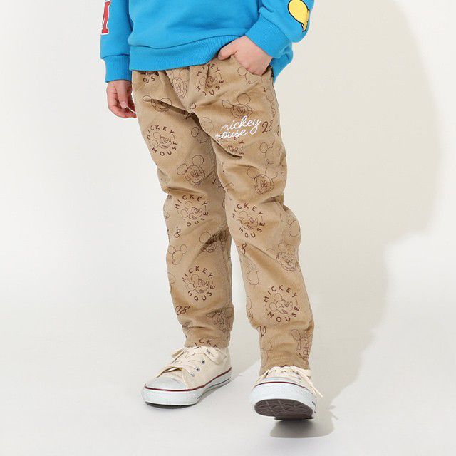 秋冬コーデのアクセントにもってこいのコーデュロイとミッキーの総柄がおしゃれなロングパンツ♪
