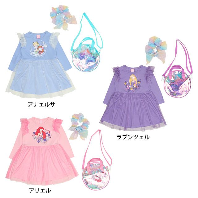 子供服 キッズ 女の子 こども 子ども服 キャラクターセット キャラセット ホリデーセット ハッピーセット お得 ギフト 塔の上のラプンツェル アリエル リトルマーメイド 人魚姫 紫 パープル ピンク アナ雪 エルサ アナ 水色 アナと雪の女王 長袖 トップス チュニック ワンピース ヘアアクセサリー ヘアゴム フリル ミニバッグ ショルダーバッグ 鞄 おしゃれ 可愛い かわいい ガールズコーデ キッズコーデ ガーリー フリル フリフリ フェミニン フェアリー お姫様 春秋冬■素材