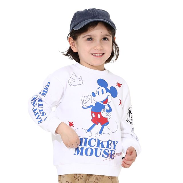 ベビーサイズ キッズ 男の子 女の子 こども 子ども服 リンクコーデ 親子ペア ペアルック 親子コーデ お揃いコーデ ファミリーコーデ おそろい 長袖 トップス フード無し 英字 カジュアル ベーシック ゆったり プルオーバー スウェット ビッグシルエット ミッキーマウス ミニーマウス DISNEY リラックス 楽ちん アメリカン 白 薄紫 かっこいい クール 可愛い かわいい