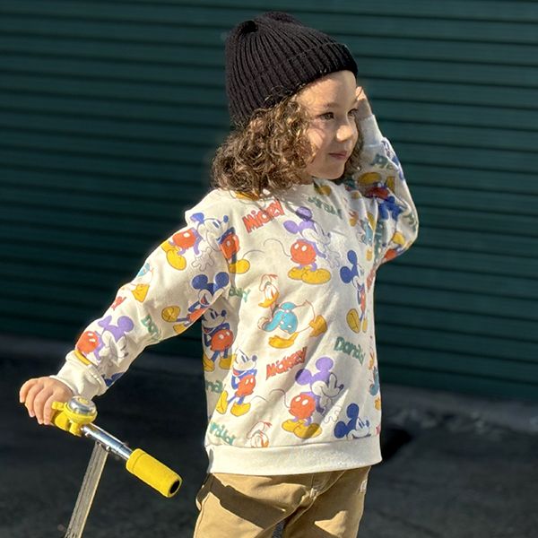 ベビーサイズ キッズ 男の子 女の子 こども 子ども服 リンクコーデ 親子ペア ペアルック 親子コーデ お揃いコーデ ファミリーコーデ 長袖 トップス フード無し プルオーバー スウェット ビッグシルエット ワイドシルエット ドロップショルダー 人気キャラクターデザイン ストリート アメカジ カジュアル おしゃれ 可愛い かわいい かっこいい 春秋冬 ミッキーマウス ミニーマウス デイジー ドナルド