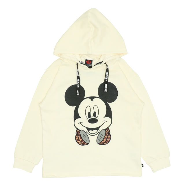 可愛いミッキーとミニーのビッグフェイスにヒョウ柄のワッペンがポイントのパーカー♪