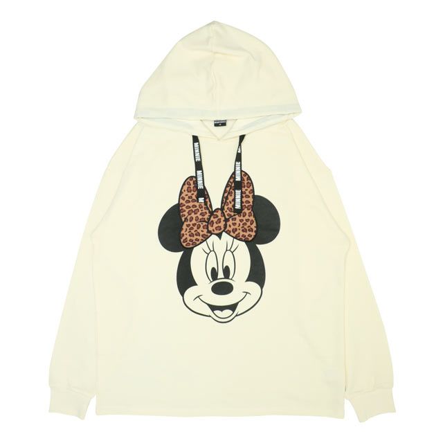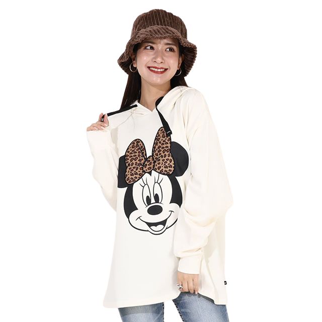 可愛いミッキーとミニーのビッグフェイスにヒョウ柄のワッペンがポイントのパーカー♪