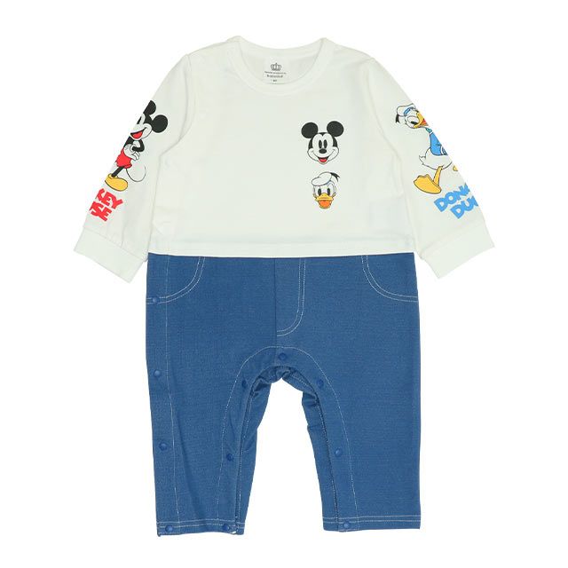 【ベビードール】ミッキー ドナルド デニムドッキングロンパース 0195B / ベビー服 リンクコーデ ペアルック 親子コーデ つなぎ 長袖 ボディ肌着 出産祝い 贈り物 プレゼント 天竺素材
