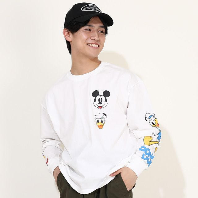 【ベビードール】ミッキー ドナルド 親子お揃い 袖キャラクタ ーロンT 0199A / 大人 ユニセックス 男女兼用 リンクコーデ ペアルック 親子コーデ トップス 長袖 クルーネック カットソー 天竺素材